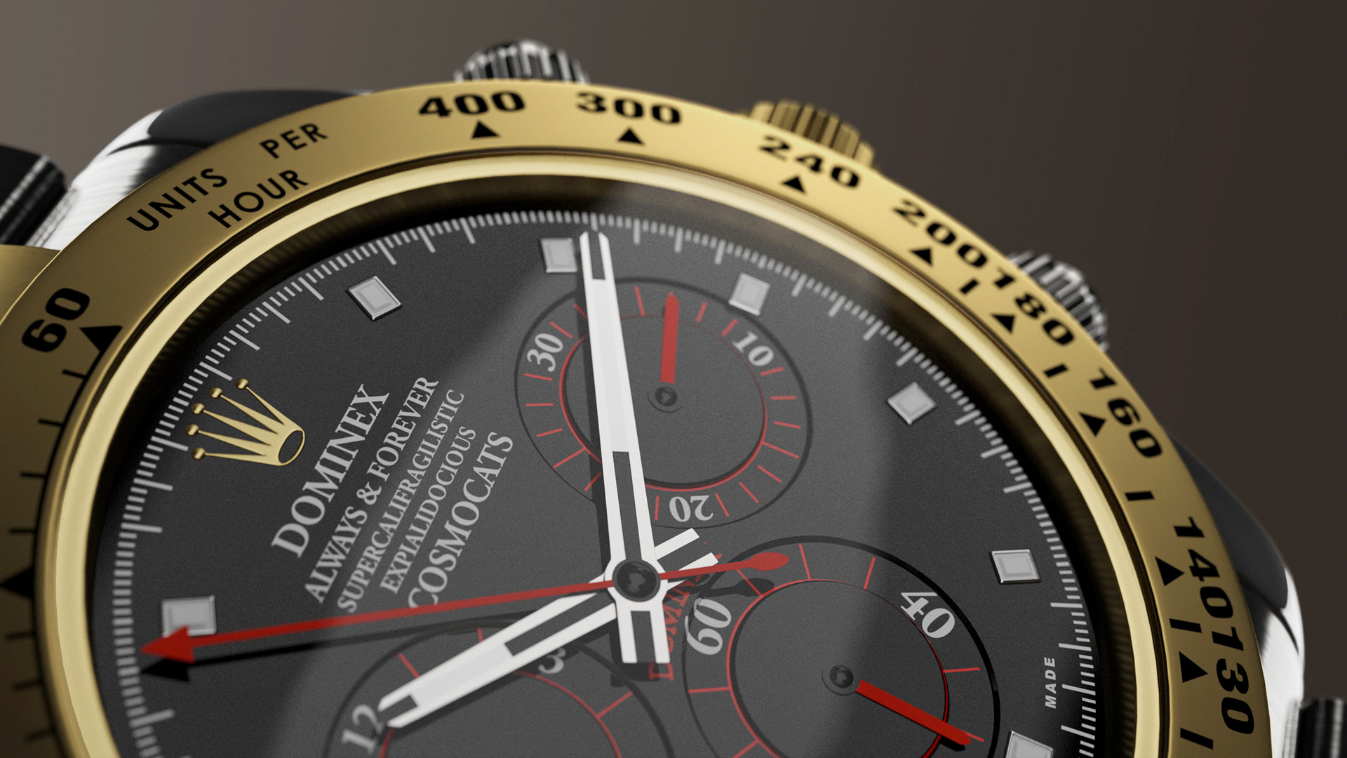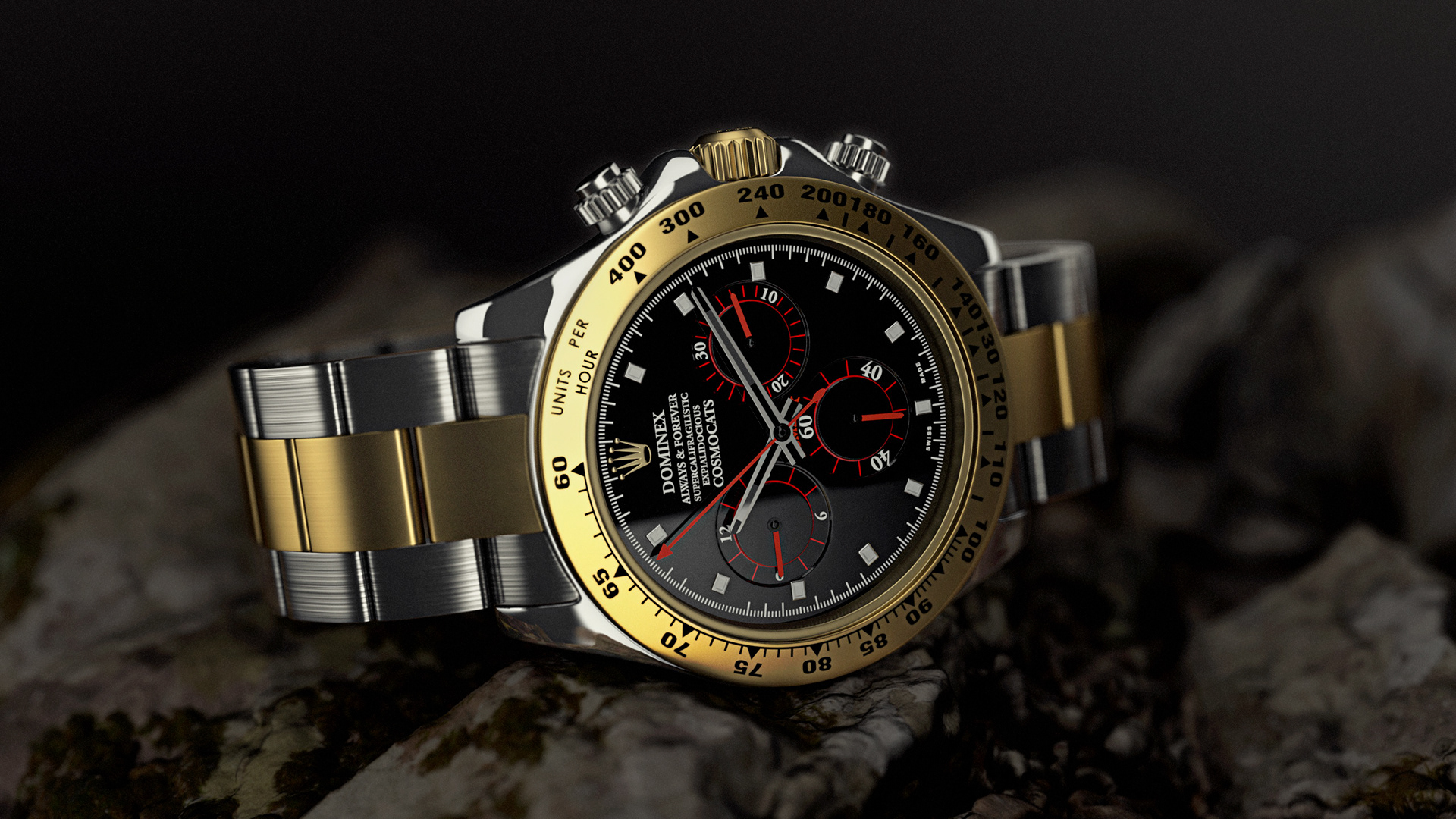 CG Watch Test. 3D Model "Rolex Cosmography Daytona" by Milosjakubec @Turbosquid. I did the conversion, shading, setup and lighting in MODO 10.1 as an exercice .