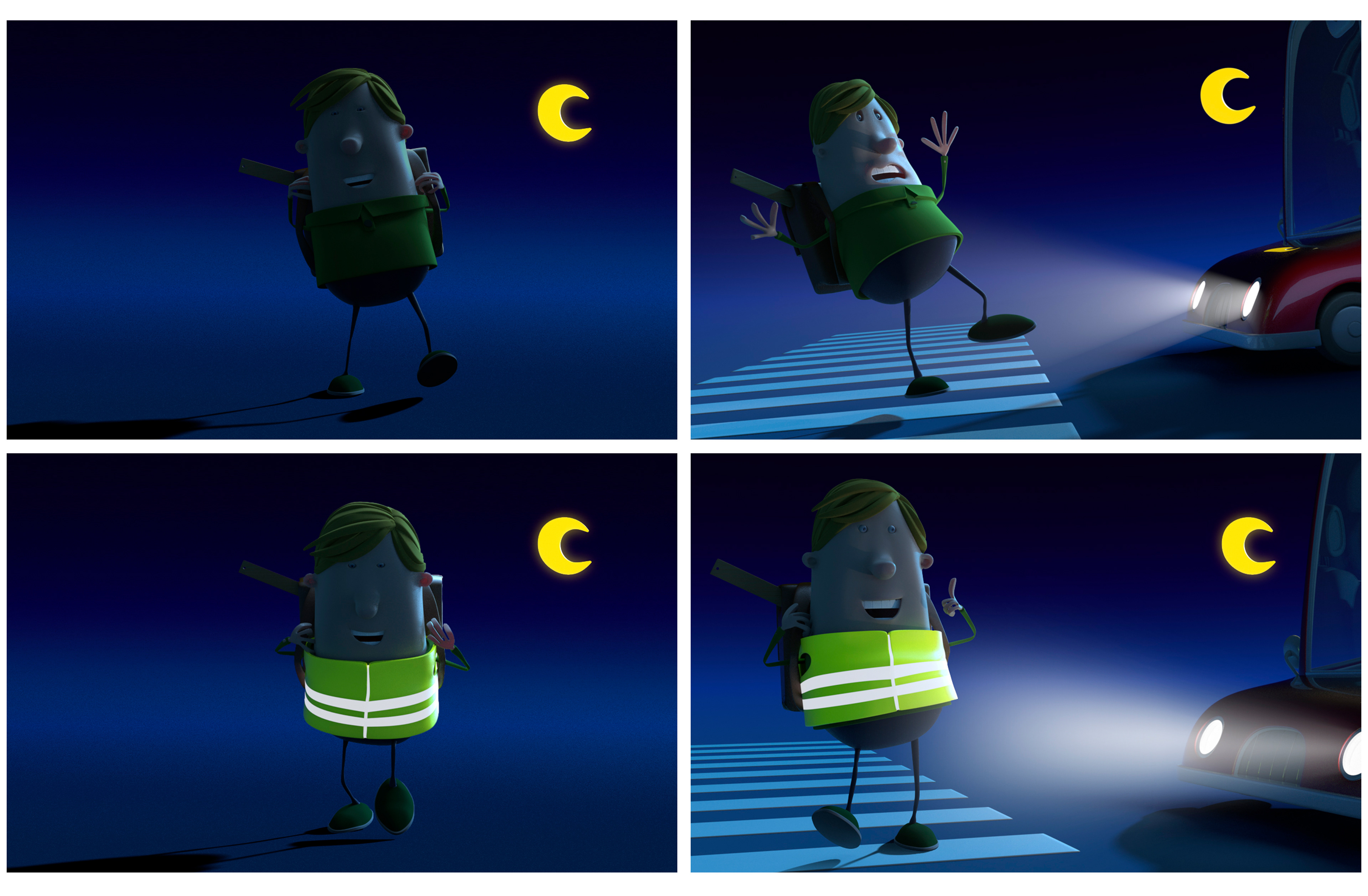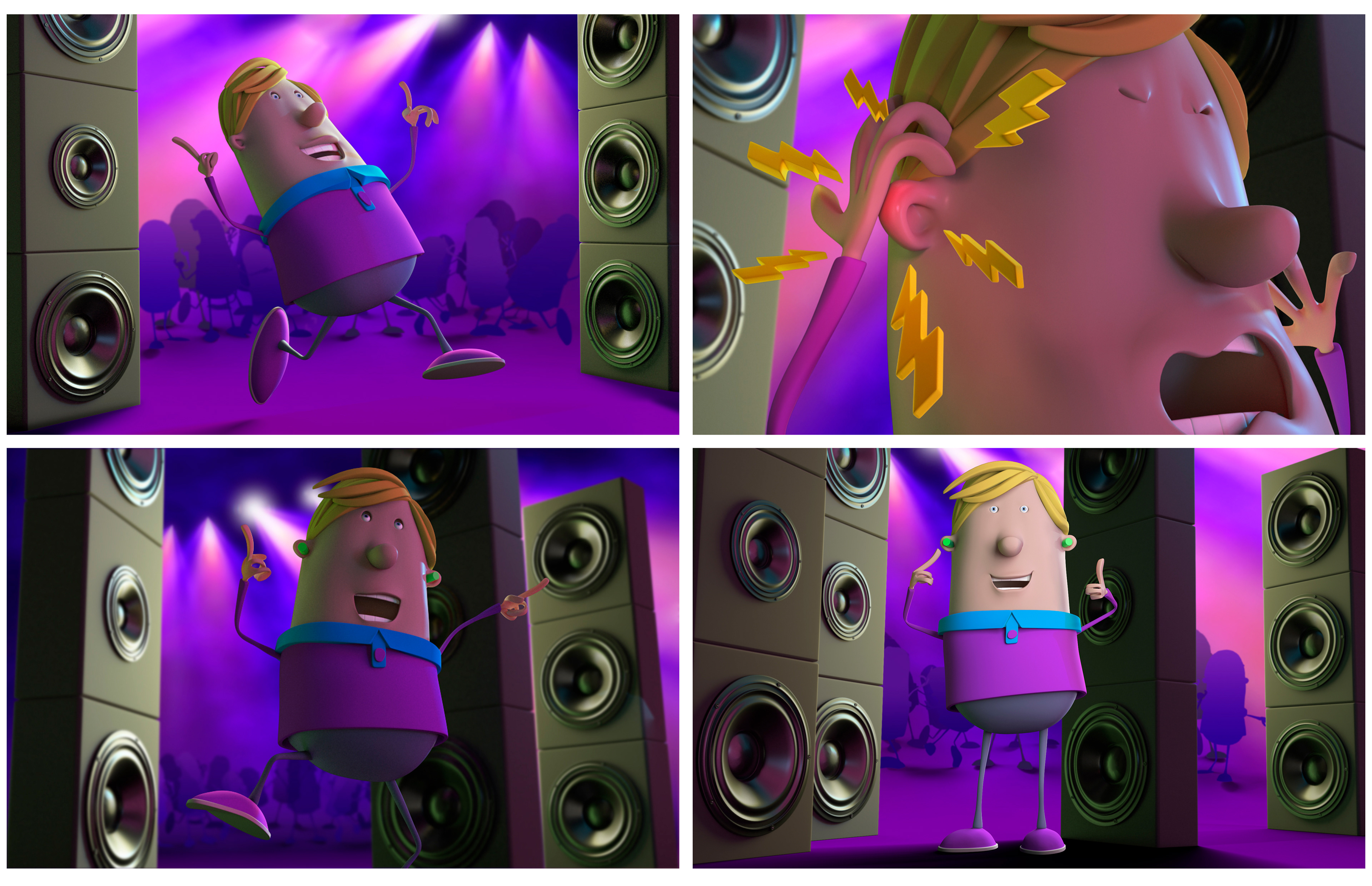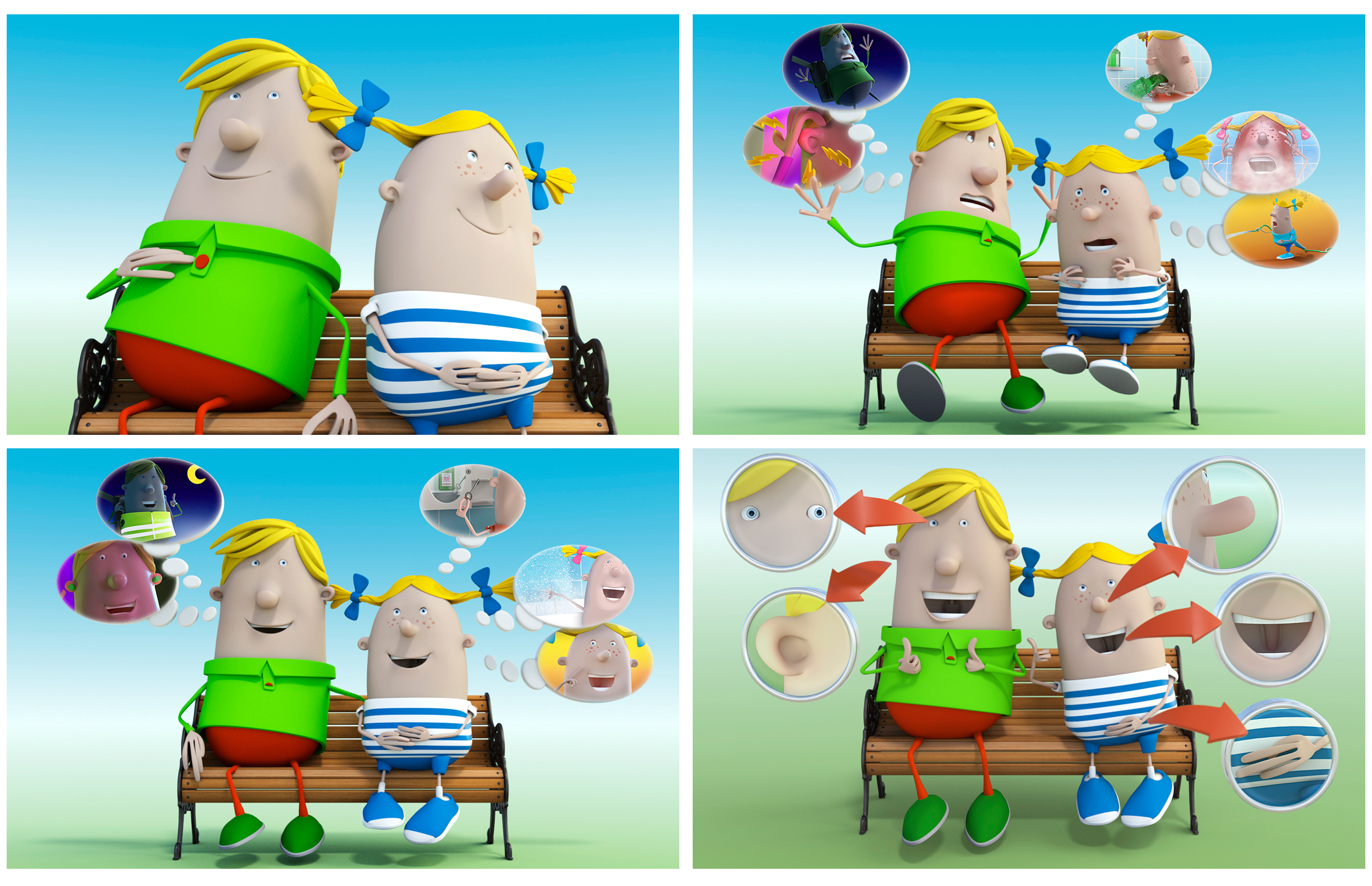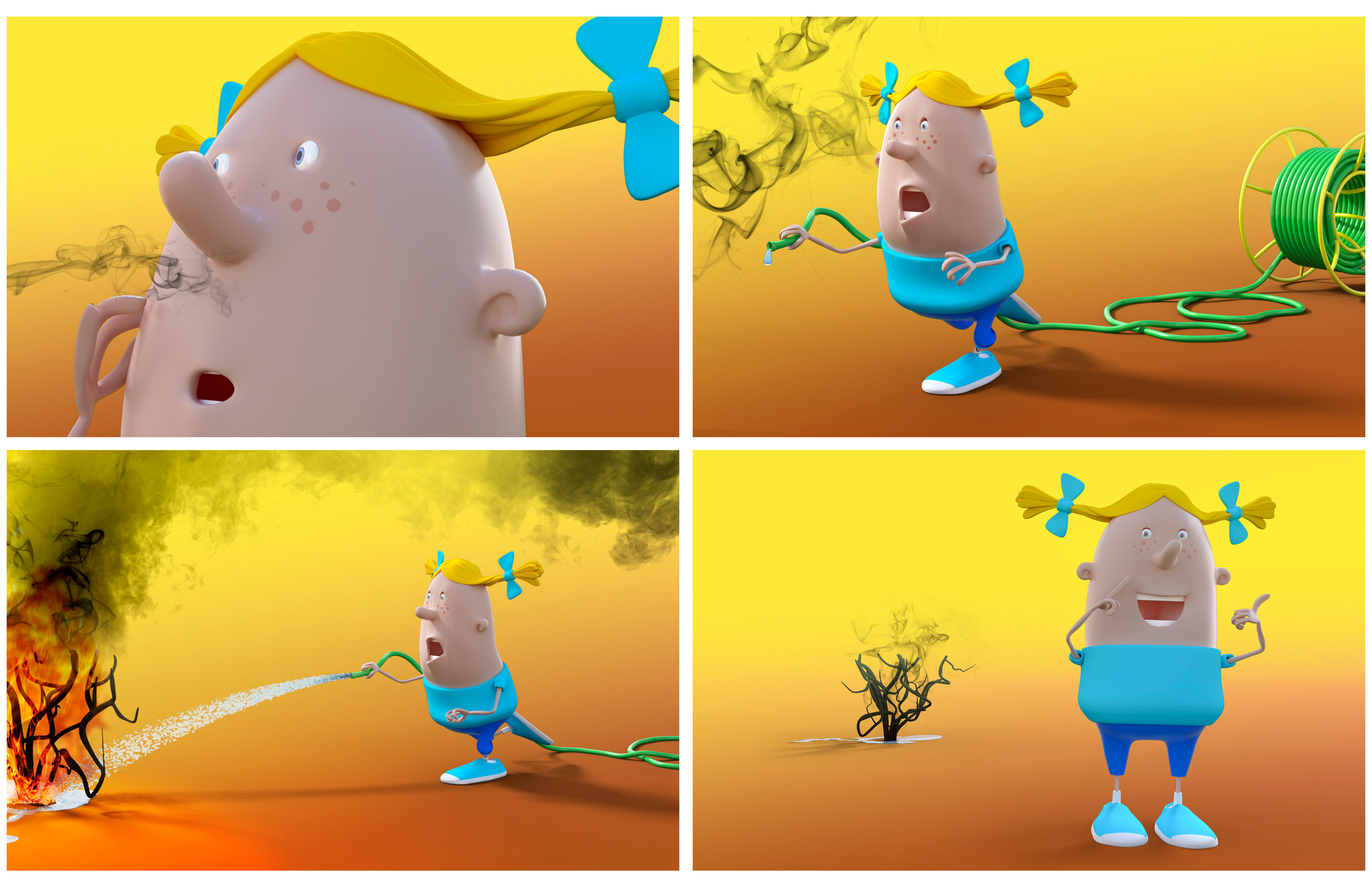 All the 3d models were provided by the agency. These characters are part of a the visual identity of the insurance Ethias which is a sponsor. I had to rig them, create the morphs maps for the faces and pose them according the briefing. I used MODO.